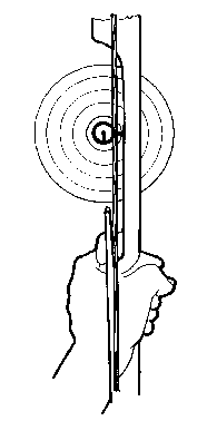 arm is moved to align the sight pin into the centre of the target.
